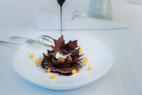 His commitment to quality, showcased through the long-standing collaboration with Valrhona, is reflected in the exquisite autumn dessert featuring Sakanti Cuvée Bali 68% with a soft biscuit, chocolate cream and streusel on a bed of blackcurrant confit, and marmalade.